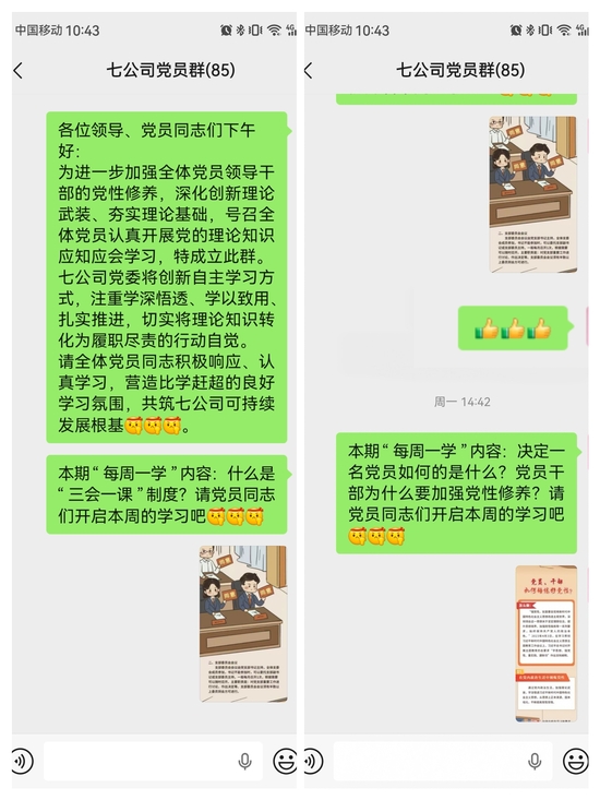 七公司黨委堅持把黨員教育管理作為夯實黨建基礎、提升隊伍素質的重要抓手,立足常態長效、系統推進,創新建立常態化學習機制。該機制是七公司黨委加強黨員日常教育、強化理論武裝、深入宣貫黨的二十屆四中會精神的一項重要舉措,旨在通過系統化的學習安排,持續提升黨員政治素養和履職能力。活動依托黨員微信群,著力破解傳統學習中“時間難統一、形式較單一、效果難檢驗”等現實問題,以圖文并茂、簡潔易懂的學習小貼士為載體,推動黨員干部利用碎片化時間隨時隨地“充電蓄能”,實現理論學習融入日常、學在經常、用在平常。 精準錨定學習方向,內容設置“靶向發力” 七公司黨委精心構建“多維立體”學習內容體系,緊扣黨員教育核心需求,依托黨員微信群搭建學習新陣地,開展“每周一學”微教育。內容聚焦夯實黨的基礎常識,厘清核心概念;黨史關鍵節點,回溯黨的奮斗歷程;解讀黨內法規核心條款,明晰行為準則;傳達全會精神應知應會,把握時代脈搏;提煉黨的創新理論金句,凝聚思想共識;講述先進黨員事跡,汲取奮進力量。每期內容均經過精心篩選打磨,突出政治性、理論性,兼顧通俗性、實用性,實現“干什么學什么、缺什么補什么”的精準供給,確保學習不走過場、不搞形式。 創新學習傳播形式,云端課堂“便捷高效” 打破“念文件、劃重點”的傳統模式,以可視化、輕量化的學習小貼士圖片為主要形式,通過黨員微信群定向推送,打造“指尖上的移動課堂”。無論是通勤路上、工作間隙,還是休息之余,黨員只需輕點手機,就能開啟學習之旅。 首期學習聚焦黨的組織生活基本制度——“三會一課”,以卡通插畫搭配精煉文字的形式,清晰闡釋支部黨員大會、支部委員會會議、黨小組會的召開頻次、參會范圍、核心流程及決議生效條件,詳細說明黨課的組織形式、參與范圍和授課要求,讓黨員快速掌握制度規范,為規范支部組織生活筑牢基礎。 第二期聚焦“黨性修養”這一立身之本,從“黨性是什么”“為什么要加強黨性修養”“如何錘煉黨性”三個維度展開,結合夏明翰、方志敏等革命先烈的堅定信仰,楊根思、黃繼光等英雄模范的崇高壯舉,以及谷文昌、高德榮等先進典型的實干擔當,將黨性概念具象化、生動化,引導黨員在榜樣力量中感悟初心使命,在理論學習中強化黨性覺悟。 兩期內容推送后,黨員微信群內互動熱烈,大家紛紛分享學習心得、交流實踐感悟,黨員代表談到,通過系列學習,愈發深刻體會到黨性需在小事小節中涵養。大家牢記“堤潰蟻孔、氣泄針芒”的古訓,自覺在小事小節上嚴以修身,于一點一滴中完善自我。群內已然形成“比學趕超”的濃厚氛圍,讓云端學習不再是“單向灌輸”,而是“雙向互動”。 據悉,第三期內容將圍繞黨的二十屆四中全會提出的“52167”數字體系進行解讀,幫助黨員干部進一步把握國家治理現代化的核心要義。 學習無止境,奮進正當時。依托“小屏幕”搭建“大課堂”,借勢“微載體”凝聚“強動能”,一場覆蓋全體黨員、融入日常的理論學習熱潮正在七公司蓬勃興起。七公司黨委將持續深化黨員教育管理工作,以更高站位錨定學習方向,不斷豐富黨的創新理論知識等學習內容,通過常態化開展交流分享、知識問答等活動強化互動實效,讓理論學習從“被動聽”變為“主動學”。 七公司黨委將始終堅持學思用貫通、知信行統一,緊扣“決戰四季度、沖刺全年度”的核心目標,推動學習成果轉化為破解發展難題的實招、攻堅沖刺的硬功、提質增效的良策、服務群眾的舉措,以永不懈怠的學習姿態和一往無前的奮進精神,為公司高質量發展注入不竭動力。 |